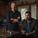 The front door opened with the easy familiarity of someone who didn’t need an invitation. Logan’s boots thudded against the floorboards first, the weight of him unmistakable. Rhys followed a moment later, his stride quieter but no less imposing. Both men carried the lingering scent of institutional corridors—air freshener and coffee that had stewed too long.
